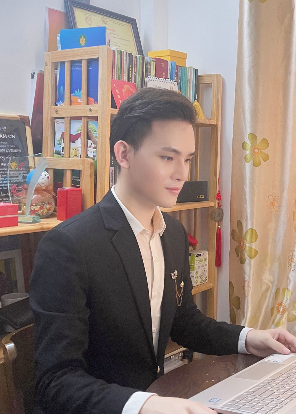 MC Hải Đăng chỉnh chu khi thực hiện chương trình trực tuyến