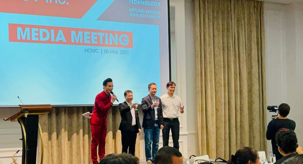 MC Hải Đăng trong sự kiện họp báo của một công ty đa quốc gia được tổ chức tại Thành phố Hồ Chí Minh