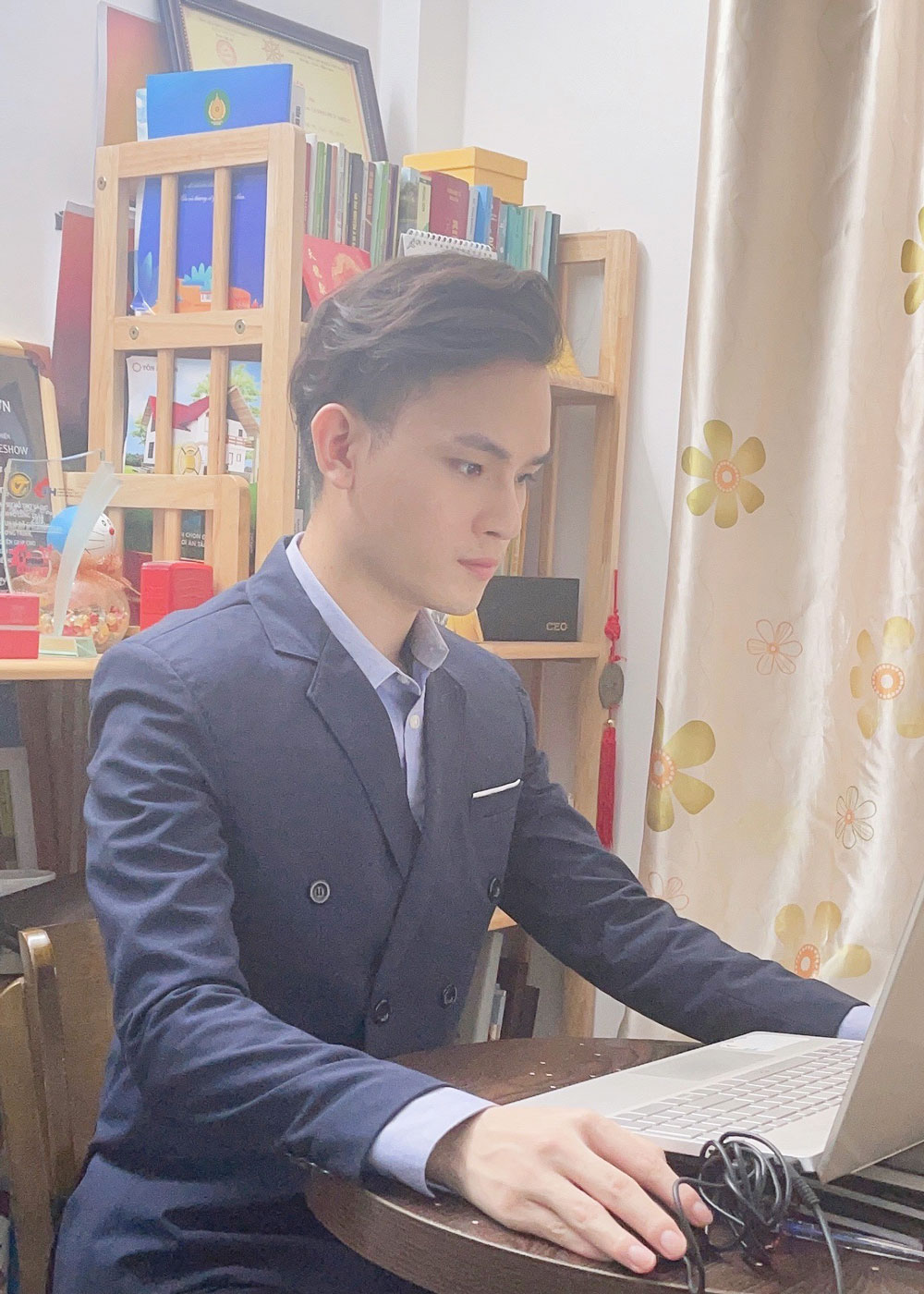 Vẫn là góc làm việc quen thuộc của nam MC Hải Đăng trong một sự kiện trực tuyến